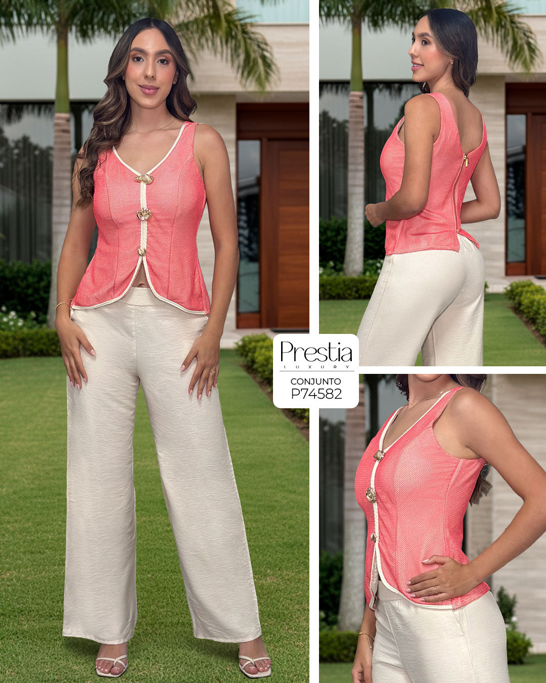 ConjuntoBlusa Sin mangas en color coral perfecta para un look femenino sofisticado y moderno. Elaborada...