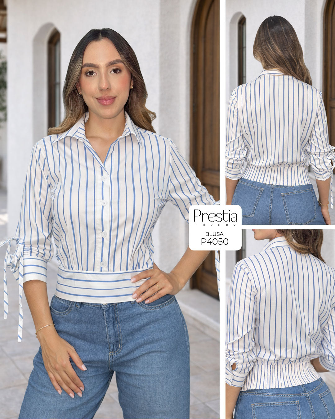 Camisa Elaborada en tela popelina de excelente calidad. Blusa en tono blanco con rayas azules...