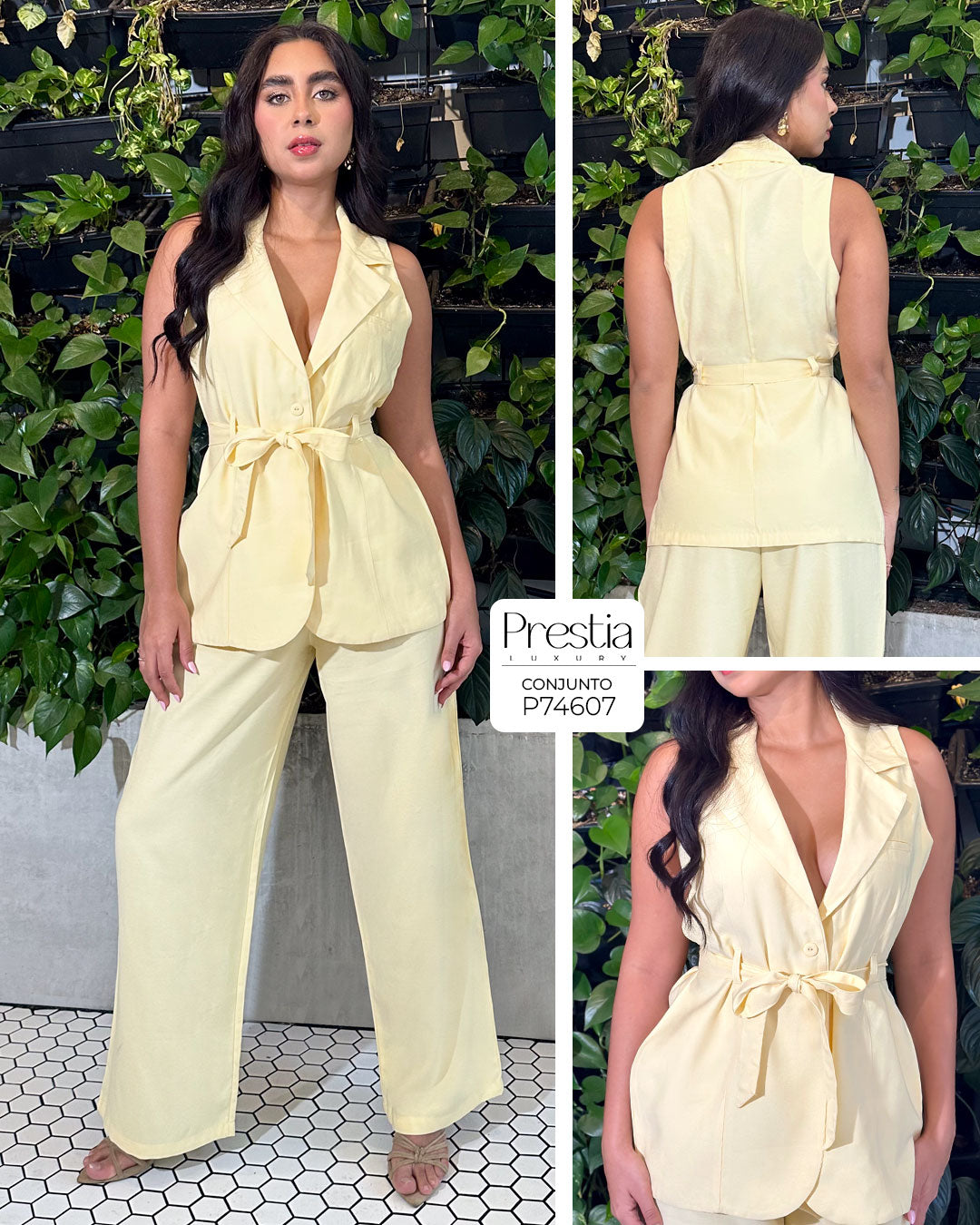 Conjunto Blusa Blusa tipo chaleco sin mangas en color amarillo. Elaborada en tela Flow Escote...