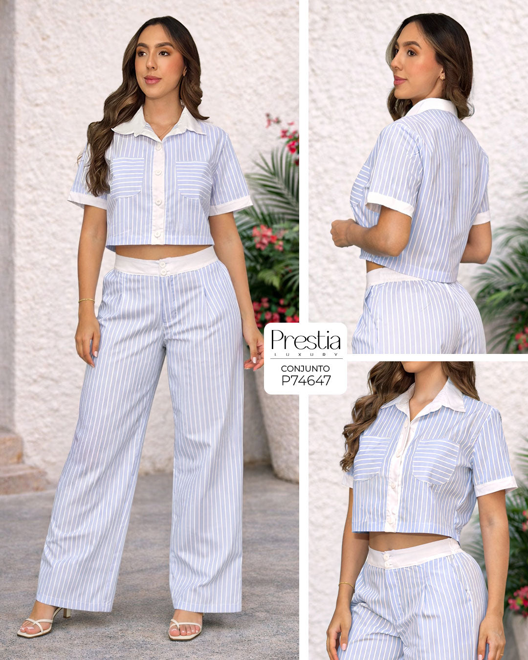 ConjuntoBlusa Elaborado en tela popelina de excelente calidad. Top en tono azul con rayas blancas...