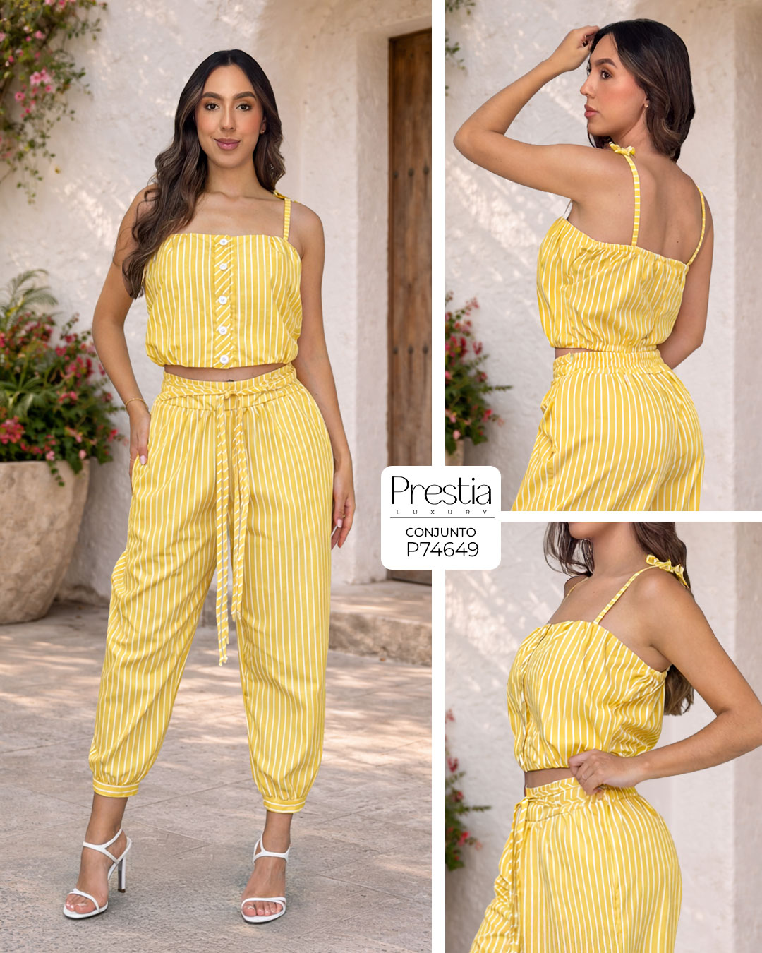 ConjuntoBlusa Elaborado en tela popelina de excelente calidad. Top en tono amarillo con rayas blancas...