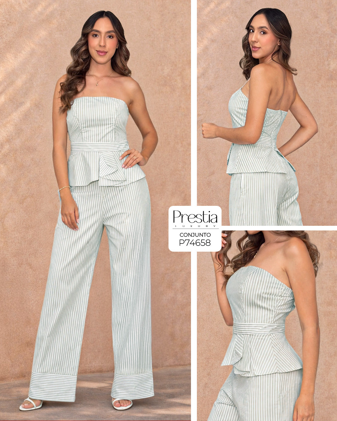 Conjunto Top Top strapless en tono verde con rayas blancas que aportan un estilo fresco...