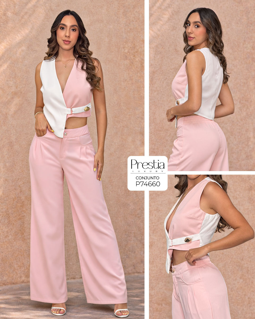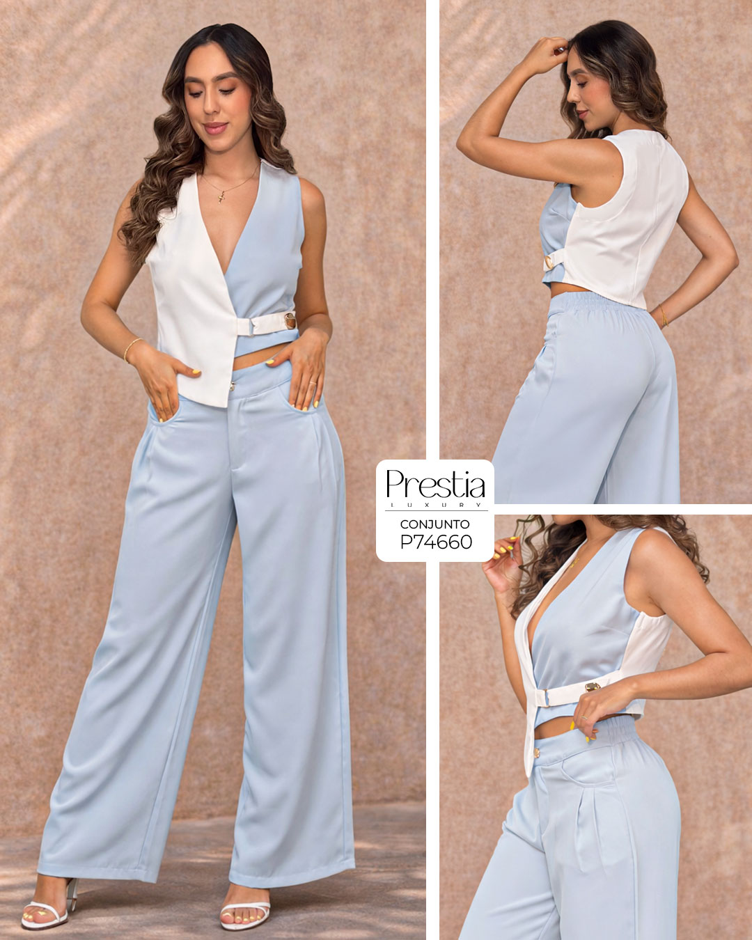 Conjunto Chaleco Escote profundo en V que estiliza el torso y aporta un aire sofisticado. Elaborado...