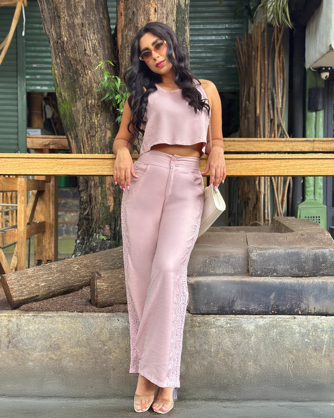Blusa Crop top : Elaborado en tela Flow Color Rosa Estilo Minimalista Pantalón: Color Rosa...