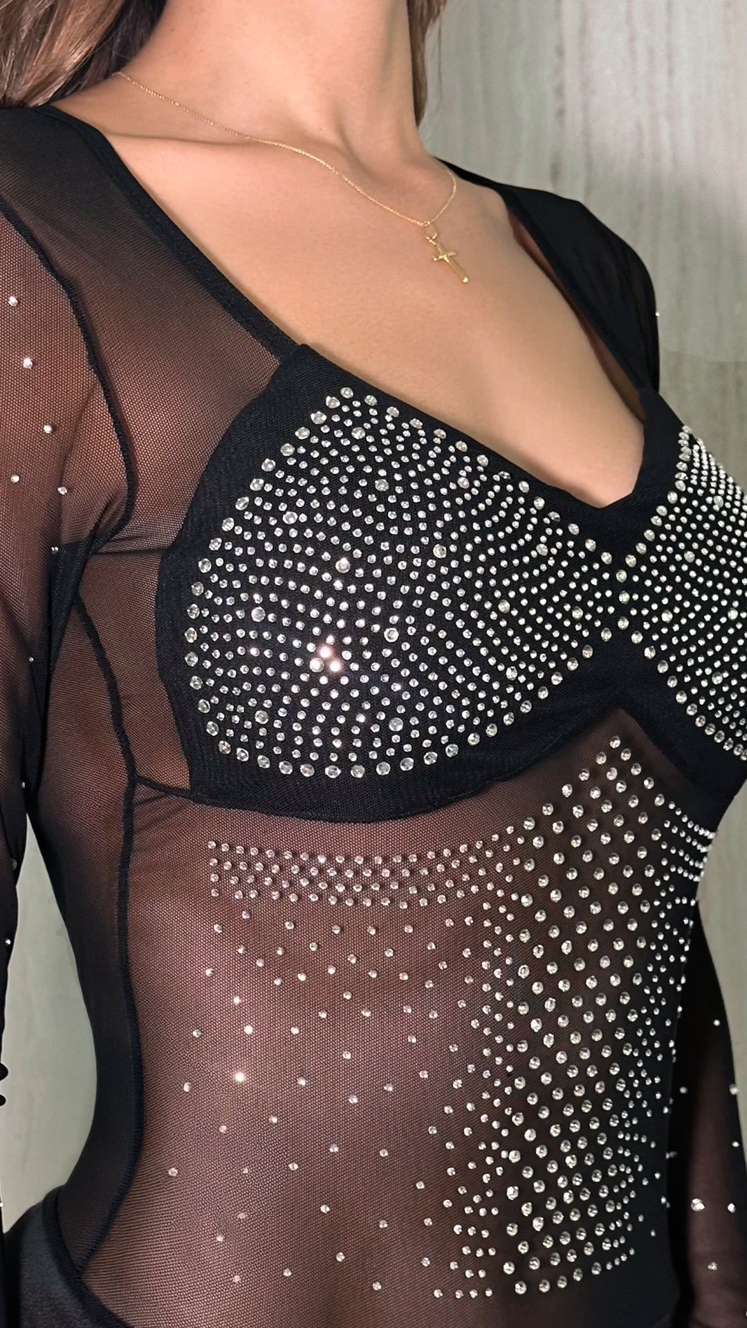 - Cuerpo ajustado tipo bodysuit que realza la figura