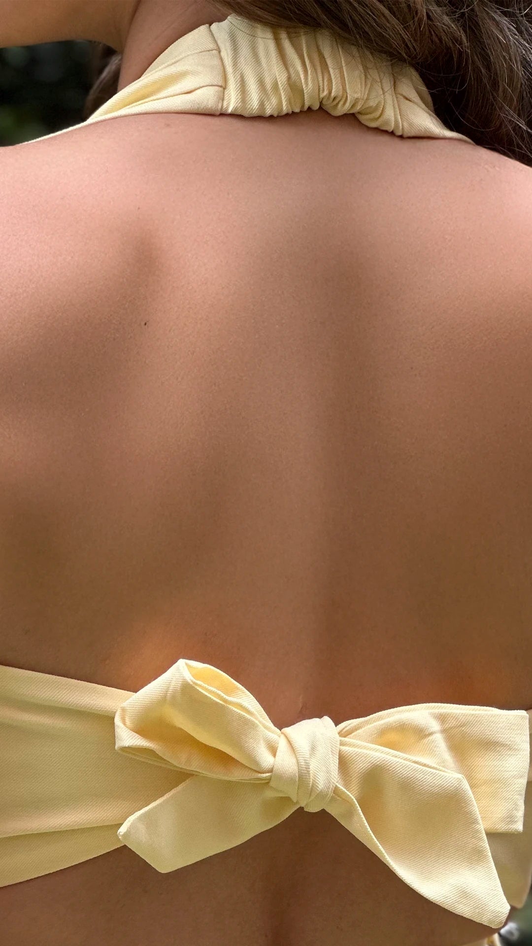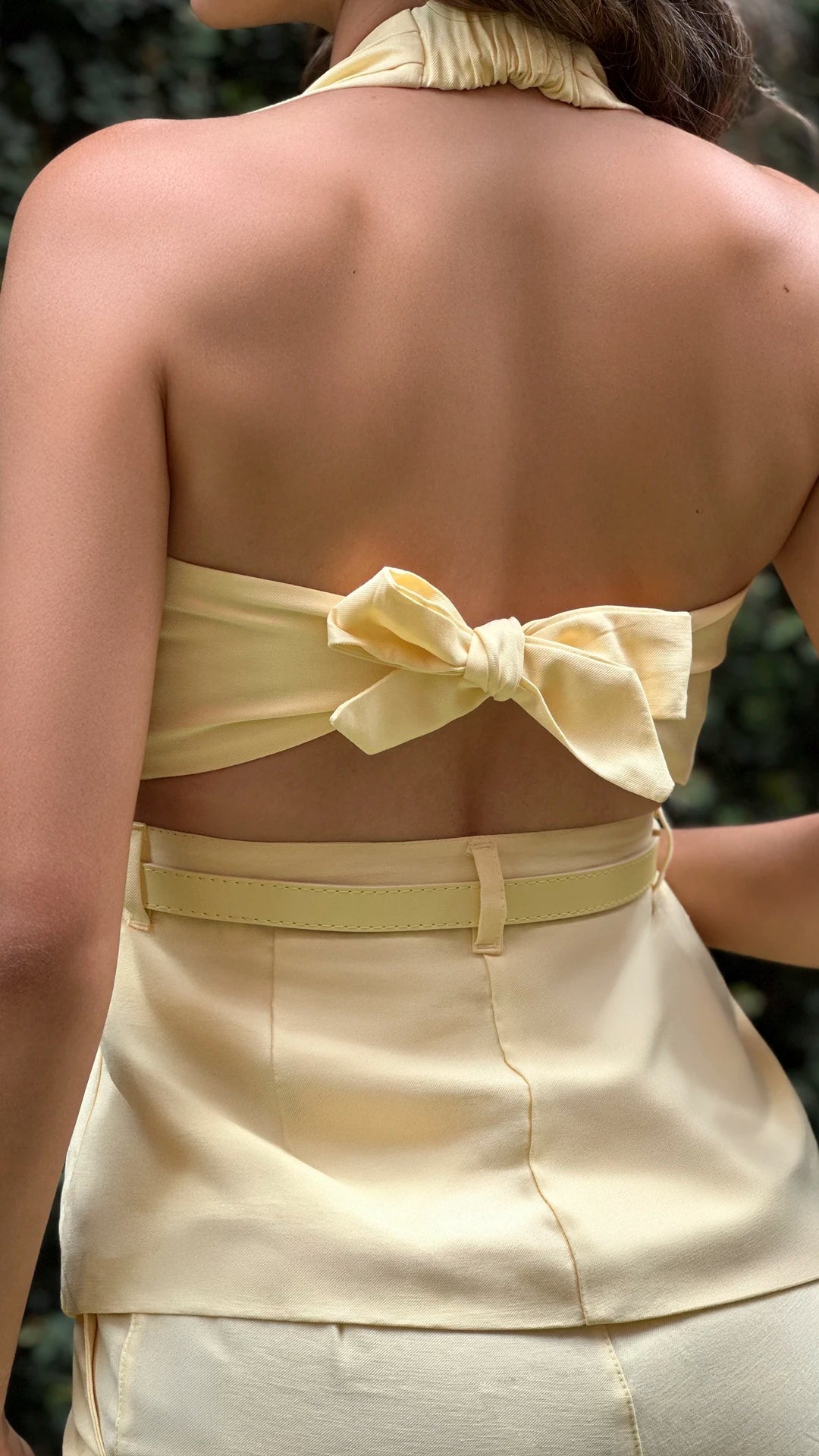 - Blusa halter en tono amarillo pastel.