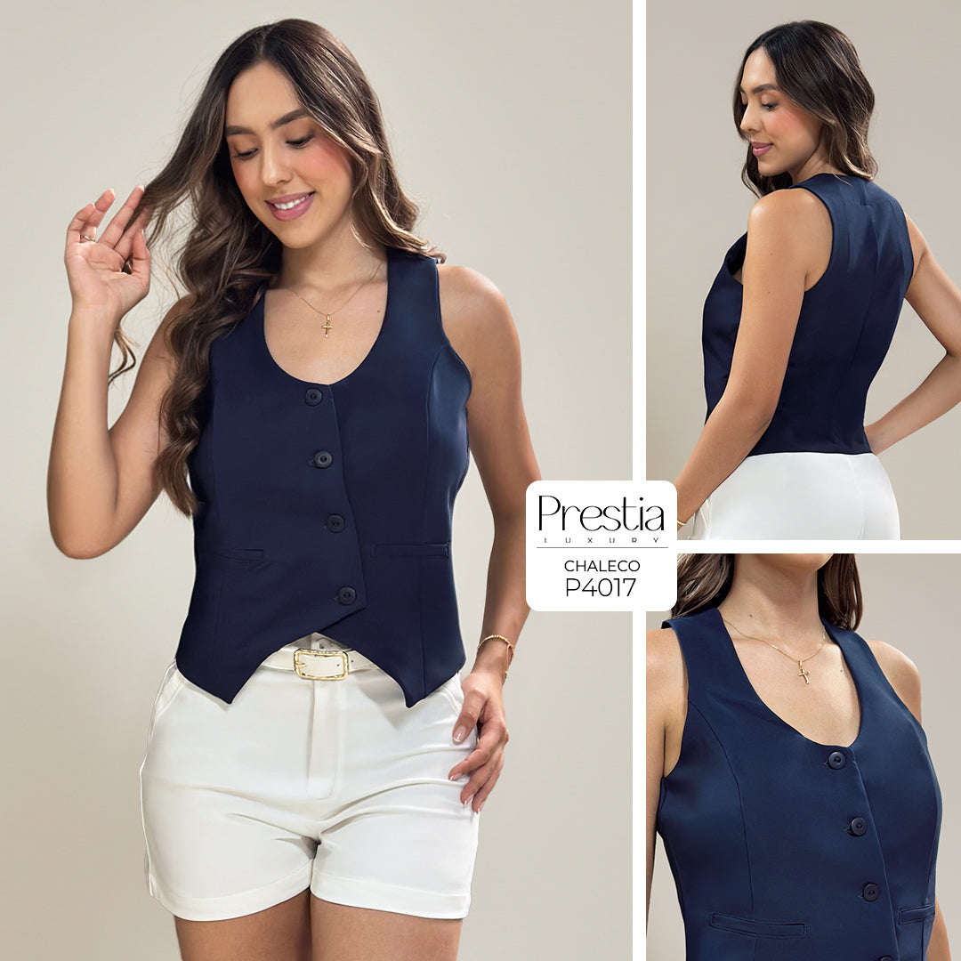 - Diseño tipo chaleco sastre sin mangas, ideal para estilizar la silueta y elevar cualquier look.