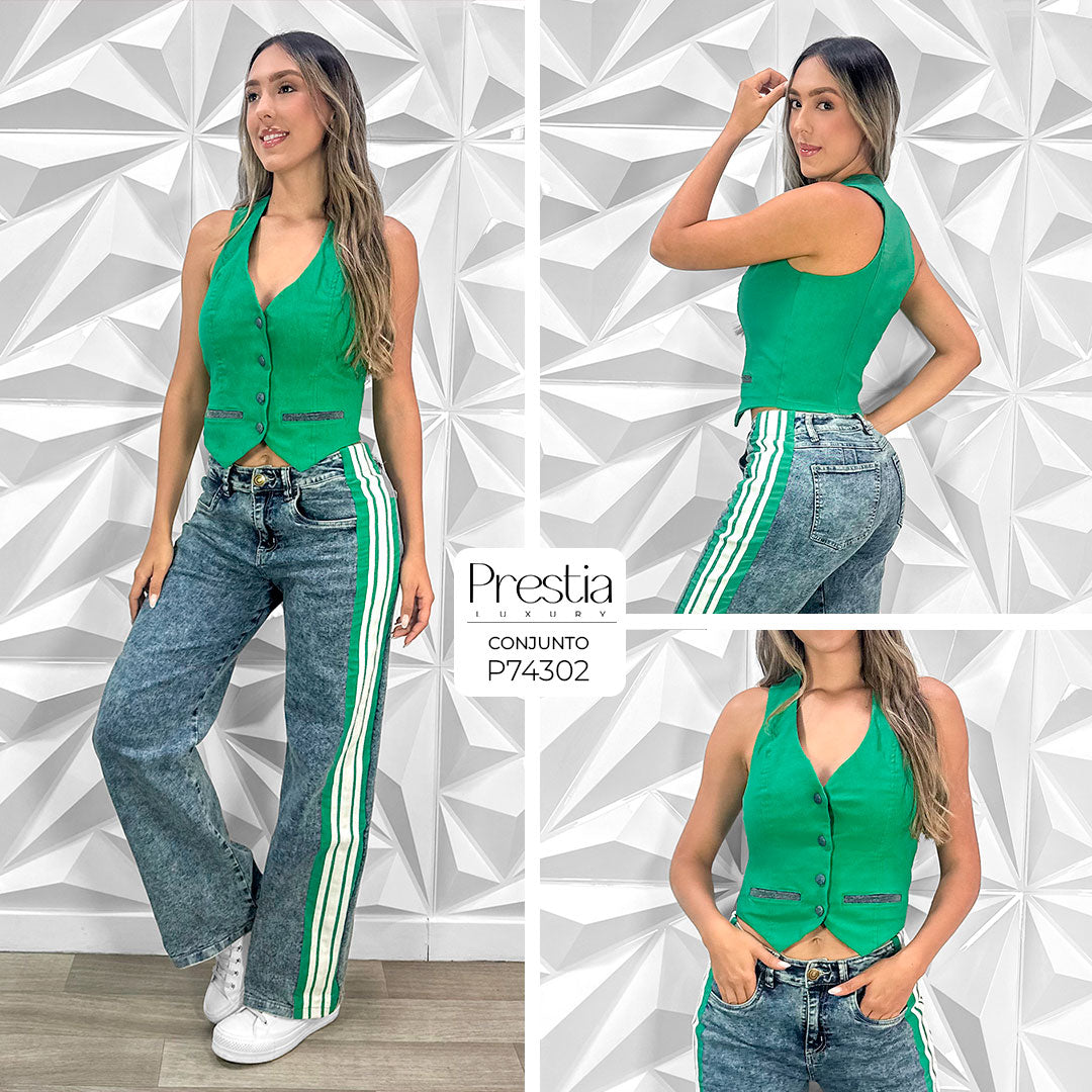 P74302 CONJUNTO BENGALINA CON INDIGO VERDE