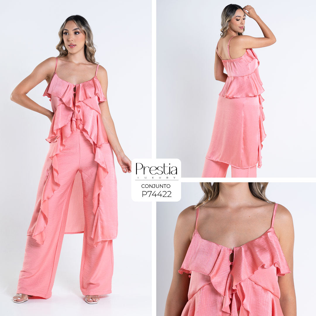 P74422 CONJUNTO LINO POLIESTER Y SATIN CRAQUELADO CORAL